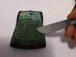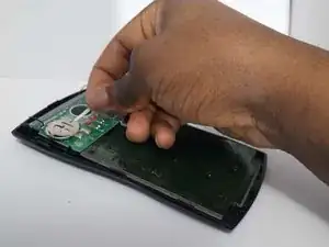 Используйте заострённый инструмент, чтобы отжать батарейку из её клеммы до тех пор, пока она не выйдет достаточно, чтобы вынуть её пальцами.