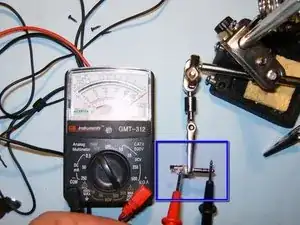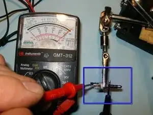 Вот как определить, какая клемма припаянна к какой части разъёма. Установите мультиметр в режим Ом. Прикосновение к наконечнику и самой короткой клемме показало проводимость.