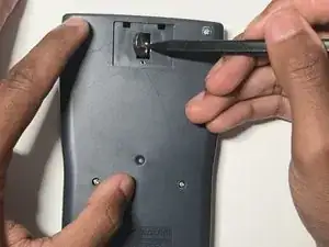 Используйте отвертку Phillips #0, чтобы удалить один винт с крышки батарейного отсека в верхней части задней крышки.