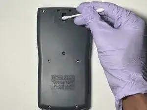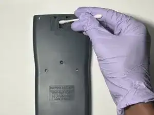 Аккуратно очистите отсек для батарей движениями вверх-вниз ватной палочкой.