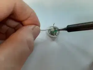 Коснитесь жалом паяльника припоя на плате, к которому припаян один из проводов. Как только припой расплавится, проверните кабель, чтобы провод отсоединился от платы. Повторите для другого оголённого провода, ещё прикреплённого к плате.