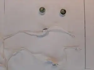 Пропустите левую сторону нового кабеля через корпус левого наушника. Завяжите узел примерно в 1,5 см от конца оголённой жилы. Повторите для правой стороны нового кабеля.
