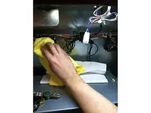 Очистите ремни на верхней части и сзади диспенсера.