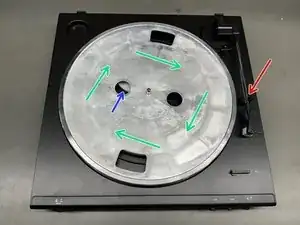 На этом шаге снимите свою пластинку (если она есть на проигрывателе) и уберите черный войлочный коврик.