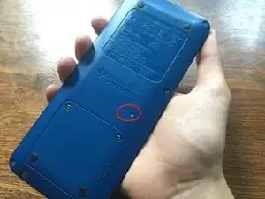 Возьмите карандаш или тонкий предмет и удерживайте кнопку 'reset' на задней панели калькулятора в течение как минимум 2 секунд, затем отпустите.