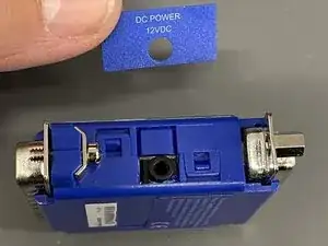 Снимите боковую наклейку (Питание постоянным током 12VDC)