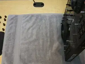 Аккуратно приподнимите корпус контроллера. Джог-колесо (теперь отсоединённое) всё ещё будет лежать на полотенце.