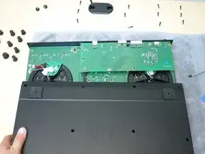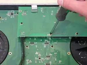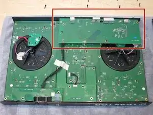 Следующей будет снята звуковая плата устройства. Найдите прямоугольную плату в верхнем правом углу перед началом инструкций по разборке, описанных в шагах 10 и 11.