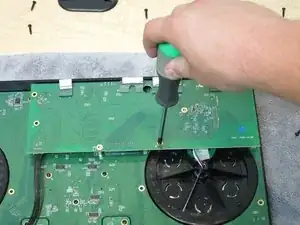 Следующим будет снято левое джог-колесо (на контроллере выглядит справа). Чтобы снять оставшиеся джог-колёса на контроллере, повторите шаги 12 и 13.