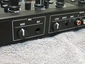 Перед снятием звуковой платы необходимо удалить 2 ручки усиления на задней части устройства. Используйте лопаточку, медиатор для гитары или маленькую плоскую отвертку, чтобы аккуратно поддеть ручку и снять её с корпуса.