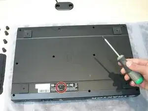 Один из двенадцати винтов закрыт наклейкой. Проще всего снять этот винт, предварительно удалив наклейку.