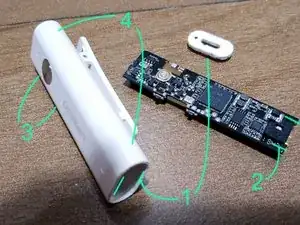(8) Теперь вставьте плату обратно в корпус, но не вставляйте её полностью. Также имейте в виду, что точки пайки должны быть обращены вниз, обратной стороной к тому, что показано на картинке.