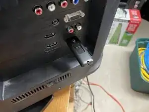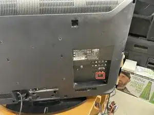 Найдите USB-порт на задней панели телевизора с надписью "Только для сервиса". Он расположен под аналоговым (RCA) выходом аудио и справа от HDMI-разъемов.
