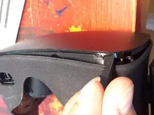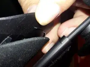 После того как наружная рамка освобождена (как в предыдущих шагах), можно слегка потянуть рамку, чтобы увидеть одну из шести защёлок. Как показано на фотографии 1.