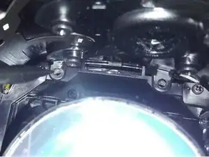 Ещё один винт держит кнопку регулировки линз, который нужно будет снять в следующем шаге. Его видно на фотографии 3.