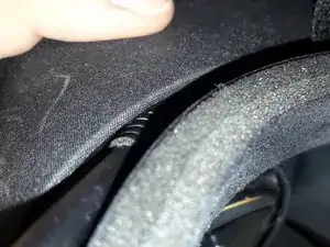Поролон приклеен к пластиковой рамке, которая защёлкивается на основном корпусе. Нужно снимать поролон и пластиковую рамку вместе.