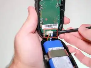 Используйте лопатку, чтобы отключить провод аккумулятора от материнской платы.