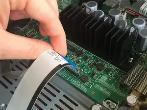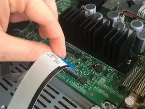 Убедитесь, что вы отключили белую ленту от основной платы, чтобы не повредить разъём при снятии передней панели.