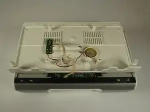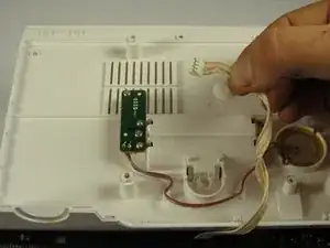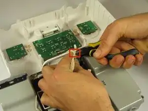 Перережьте стяжку, удерживающую провода вместе, кусачками для проводов. Две половины корпуса устройства теперь полностью разъединены.