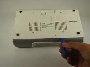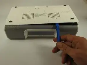 Подденьте заднюю панель пластиковой лопаткой между задней панелью и решёткой динамика.