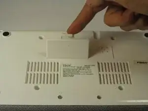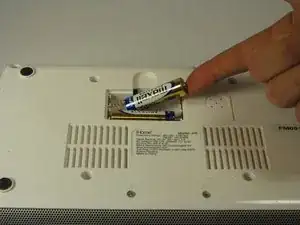 Потяните язычок на себя и поднимите вверх, чтобы снять крышку батарейного отсека.