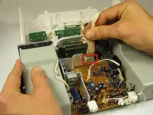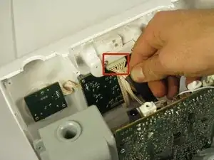 Крепко потяните широкий 9-контактный разъём с чёрной изоляцией на нижней стороне верхней части корпуса, чтобы отсоединить его.