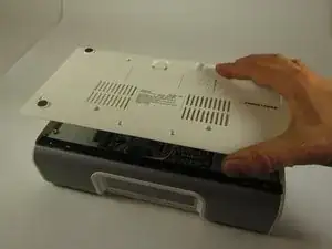 Снимите два винта Phillips #2 длиной 10 мм, расположенных внутри боковых стенок корпуса динамиков.