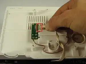 Разъедините плату и сборку динамиков, покачивая её взад-вперёд и тянув сборку на себя.