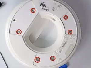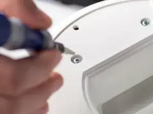 Снимите шесть винтов T-10 длиной 1 см на дне устройства (находятся под резиновыми подушками) с помощью отвертки T-10 Torx.