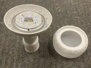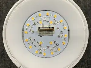 Удаление диффузора открывает доступ к печатной плате LED. Край платы WiFi также можно увидеть с выступающей антенной.