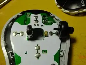 Правая сторона колеса закреплена на значительно более широком валу, который приводит в действие микропереключатель при нажатии на колесо.