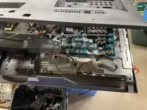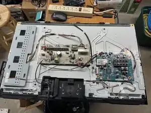 Телевизор теперь открыт, что позволяет получить доступ к основной плате, драйверу ЖК-дисплея и другим сервисным компонентам.