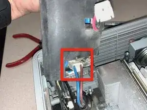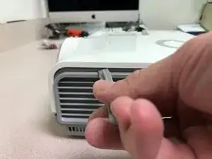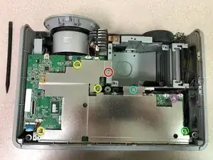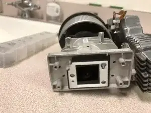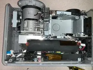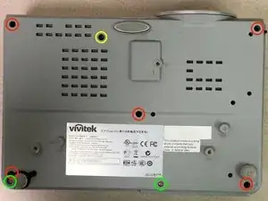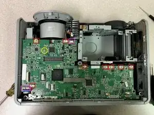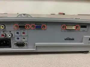 Снимите 6 стойки для видеокабелей с тыльной стороны проектора. Плоскогубцы с узкими губками ослабят их, а затем Torx-8 идеально подходит, чтобы докрутить их до конца.