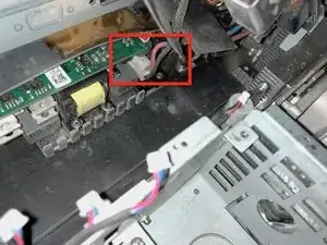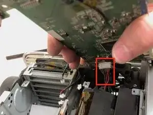 Поднимите и отключите разъём кабеля на нижней стороне платы от блока питания.