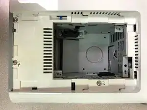 Снимите 2 винта с правой и левой стороны в нижней части, фиксирующие блок питания к шасси.