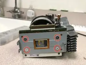 Снимите следующие 3 одинаковых винта, чтобы удалить блок объективов.