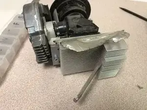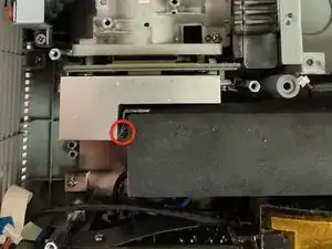 Снимите один винт и распорную планку, удерживающую радиатор на плате DMD.