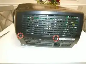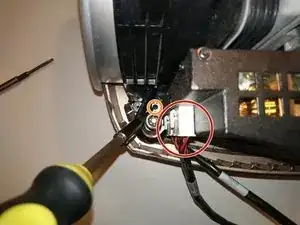 Может помочь лёгкое отгибание пластиковой нижней оболочки проектора, чтобы освободить основной сетевой разъём переменного тока.