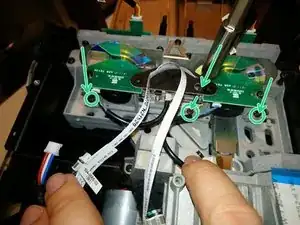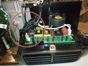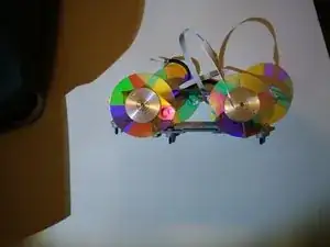 Чтобы добраться до цветовых дисков, нужно снять крышку лампового отсека. Эту плату фактически снимать не обязательно, но все провода, идущие к ней, нужно отключить.