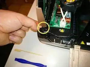 При подъёме блока питания обращайте внимание на заднюю монтажную лапку с винтом. Это острый металл, и она находится очень близко к задней части большой печатной платы. Не царапайте её (и тем более не сбивайте мелкие компоненты)!