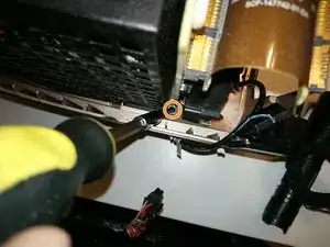 Вентиляторы крепятся в кронштейнах четырьмя пластиковыми заклёпками. Их можно выдавить сзади отверткой или пробойником — при аккуратном обращении их можно сохранить и использовать повторно для установки новых вентиляторов.