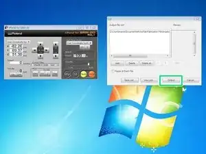 Нажмите зелёную кнопку, чтобы включить Roland SRM-20, и подключите USB-кабель станка к компьютеру. Примечание: требуется компьютер с Windows.