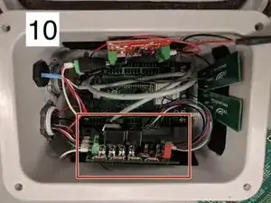 10. С помощью велкро заново прикрепите релейную плату к боковой стенке корпуса.