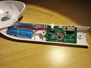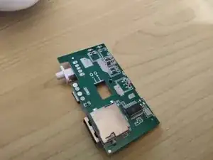 С помощью вашей отвертки PH00 открутите единственный винт от зеленой платы. Поднимите печатную плату из корпуса наушника.