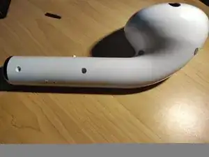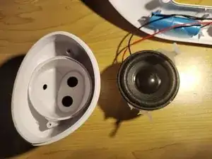 Снимите конец наушника с оставшейся части стебля. Теперь динамик можно просто вытянуть, чтобы отделить клей и удалить его с этой верхней пластиковой детали.