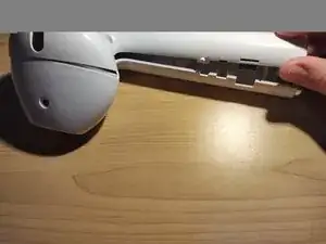 Вытяните пластиковую деталь с отверстиями под винты из устройства, начиная от стебля наушника.