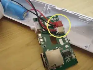 Теперь отключите соединители по цветам для динамика и батареи. Это однотипные соединения, поэтому не перепутайте их при сборке, иначе вы можете серьезно повредить устройство. Красный соединитель к красному, белый к белому. В моем случае соединитель платы вышел вместе с кабелем, поэтому используйте изображение в качестве справки для их подключения обратно.