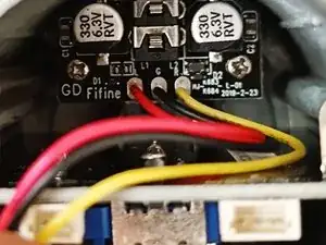 Конденсатор не прикреплён к корпусу и легко снимается. Он подключён к основной плате, поэтому будьте осторожны.