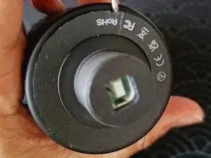 Снимите жёсткое пластиковое кольцо, закрывающее два винта Phillips на дне корпуса.