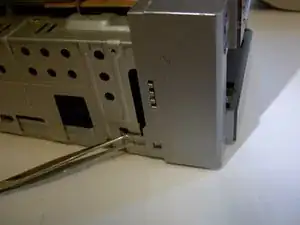 Пошевелите переднюю панель аккуратно, одновременно тянув её вперёд, пока она полностью не отделится от корпуса устройства.